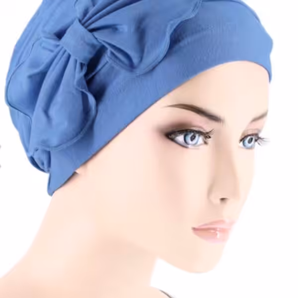 Our Bamboo Pleated Bow Caps are made with Organic Bamboo Fiber that is luxuriously soft to the touch and perfect for sensitive scalps. Breathable Bamboo helps regulate heat and wicks away scalp moisture. Hat is accented with pleating all around and features a perfectly placed hand-made sewn-on bow. A stylish but subtle cap you will want to wear everyday!