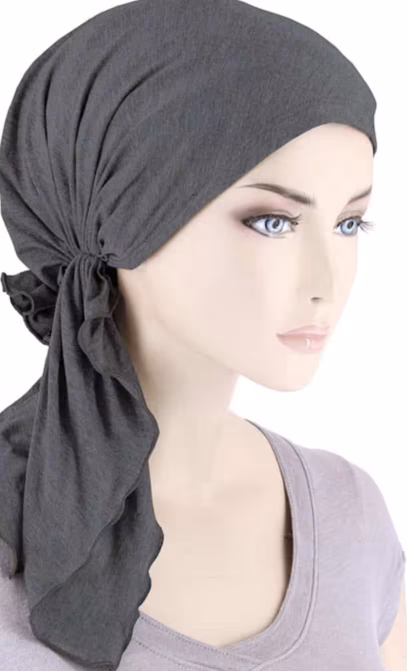 Our Organic Bamboo slip-on head scarf is soon to be your favorite! No more stress trying to tie a square scarf! The Bella Scarf in Bamboo is pretied and requires no tying skills just slip it on & off you go. Get the look fuss free with effortless beauty! Organic Bamboo Fiber is luxuriously soft to the touch and perfect for sensitive scalps. Breathable Bamboo helps regulate heat and wicks away scalp moisture. Our Bella Scarf is beautifully finished with double ties draped flowingly on your shoulder or back. Styled ruffled peek-a-boo rosette in the back adds a finished touch.