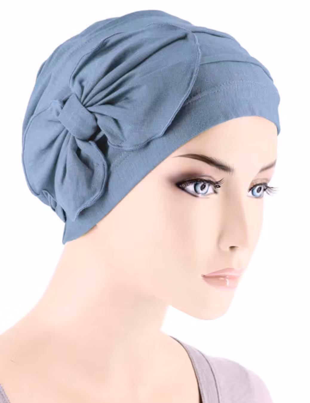 Our Bamboo Pleated Bow Caps are made with Organic Bamboo Fiber that is luxuriously soft to the touch and perfect for sensitive scalps. Breathable Bamboo helps regulate heat and wicks away scalp moisture. Hat is accented with pleating all around and features a perfectly placed hand-made sewn-on bow. A stylish but subtle cap you will want to wear everyday!