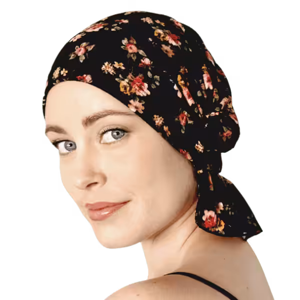 Black/Rose Ditsy Yummy Ribbed Signature Slip-On beanie adds feminine volume, producing the subtle look and feel of having hair. The unique elastic design stretches for a comfortable and easy fit. Slips on and off with ease; No tying necessary. Our patented design features a fluent fabric flap for a polished look that provides full coverage around the nape of the neck. Chemo Beanies® ends the search for the perfect fashionable fit and allows women to spend precious time focusing on their healthcare, not their headwear.