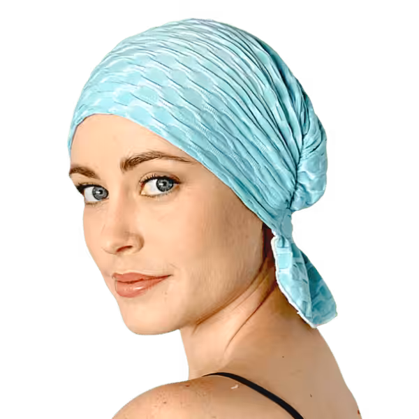 Mint Brazilian Weave Textured Knit Signature Slip-On beanie adds feminine volume, producing the subtle look and feel of having hair. The unique elastic design stretches for a comfortable and easy fit. Slips on and off with ease; No tying necessary. Our patented design features a fluent fabric flap for a polished look that provides full coverage around the nape of the neck. Chemo Beanies® ends the search for the perfect fashionable fit and allows women to spend precious time focusing on their healthcare, not their headwear.