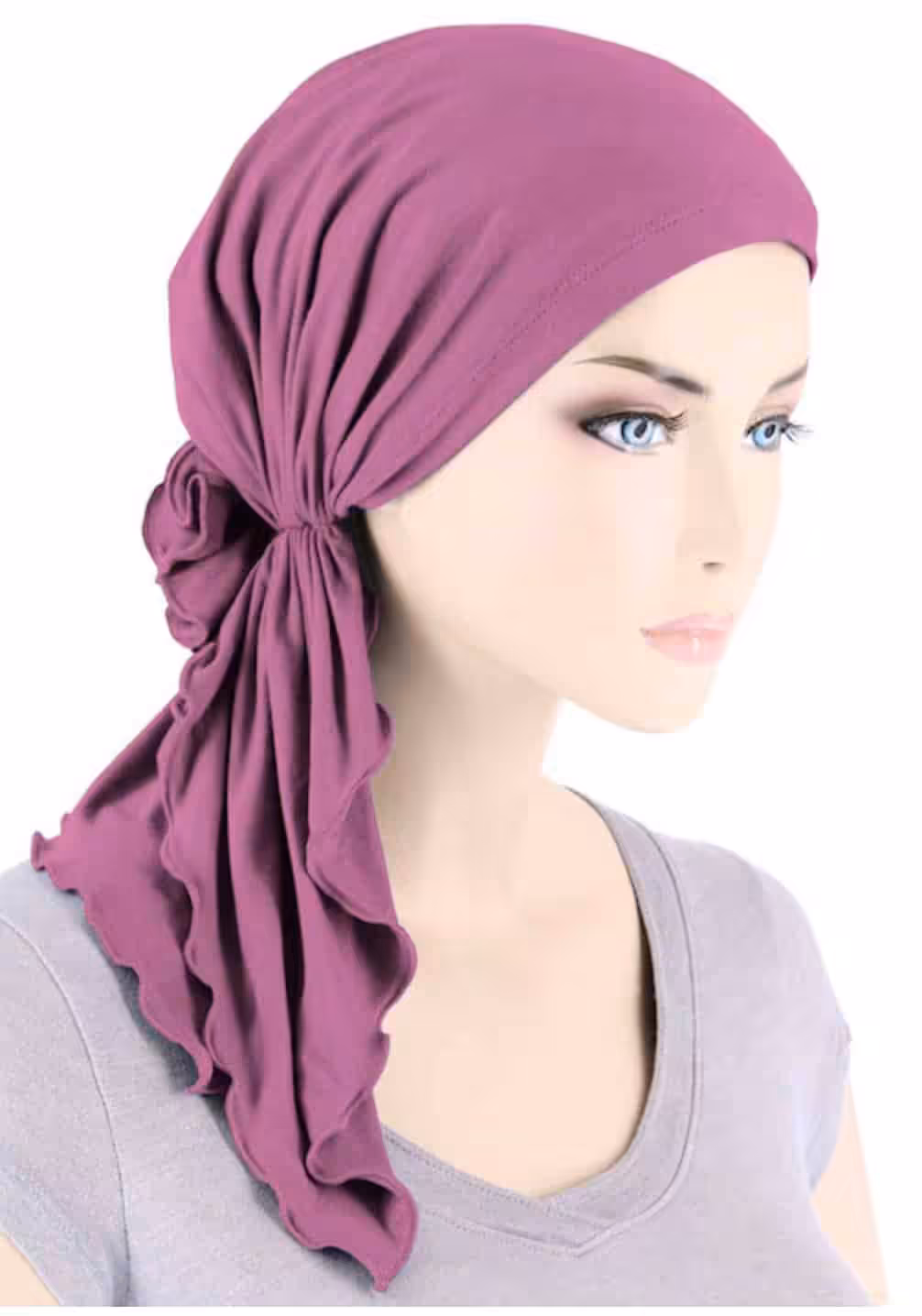 Our Organic Bamboo slip-on head scarf is soon to be your favorite! No more stress trying to tie a square scarf! The Bella Scarf in Bamboo is pretied and requires no tying skills just slip it on & off you go. Get the look fuss free with effortless beauty! Organic Bamboo Fiber is luxuriously soft to the touch and perfect for sensitive scalps. Breathable Bamboo helps regulate heat and wicks away scalp moisture. Our Bella Scarf is beautifully finished with double ties draped flowingly on your shoulder or back. Styled ruffled peek-a-boo rosette in the back adds a finished touch.